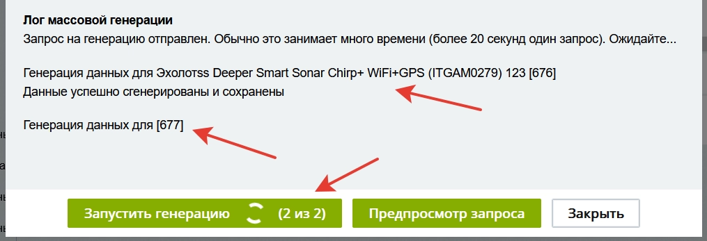 После запуска решение начнет поочередно генерировать данные для выбранных товаров. Не закрывайте окно пока процесс генерации не закончится.