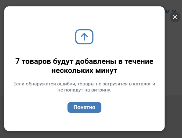5. После загрузки получим сообщение что товары будут успешно добавлены