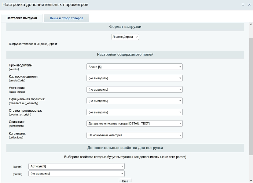 1. Выгрузка в Яндекс.Директ с поддержкой каталогов